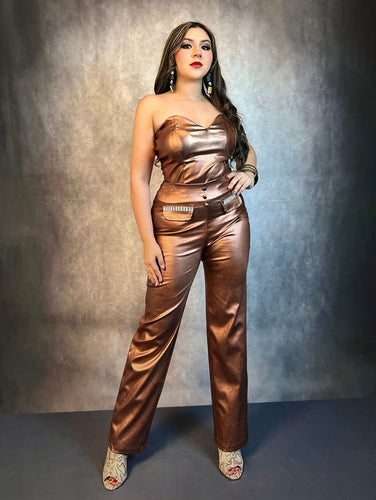 • Pantalón efecto piel cobrizado