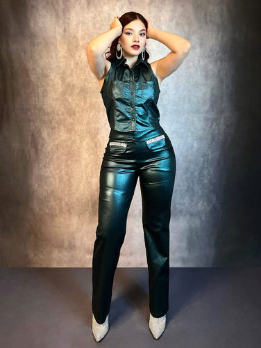 • Pantalón efecto piel verde