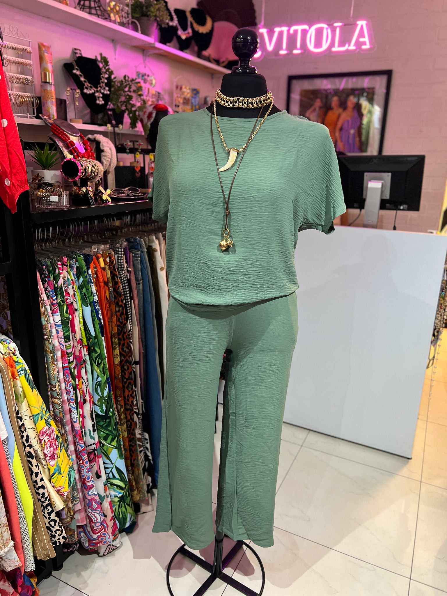 Set blusa & pantalón pistache