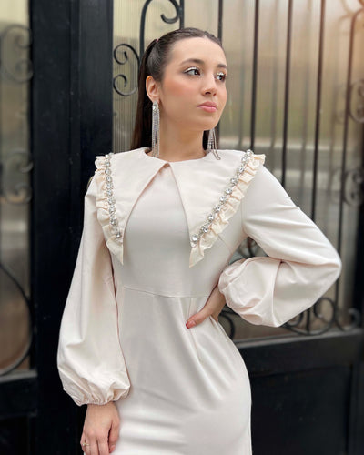 Vestido beige maxi cuello