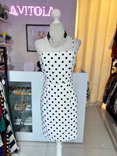 Vestido blanco lunares negros