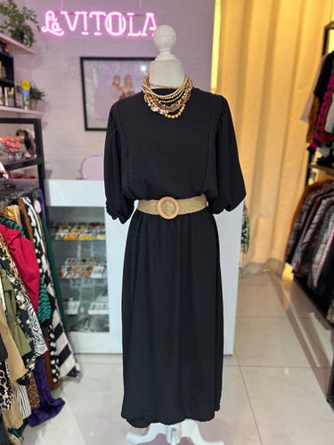 Vestido midi negro con cinturón