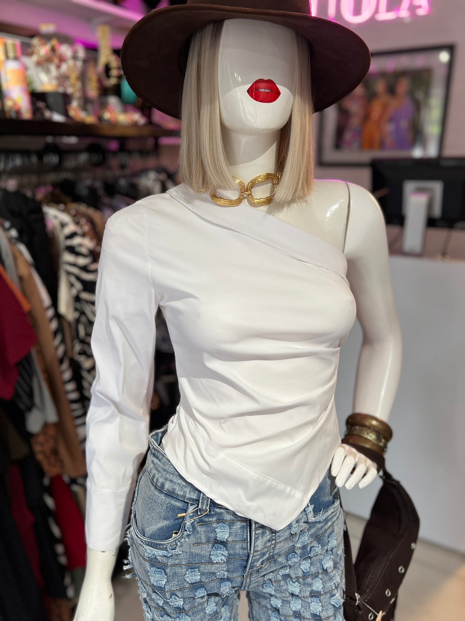 • Cargar imagen en el visor de la galería, Blusa blanca un hombro