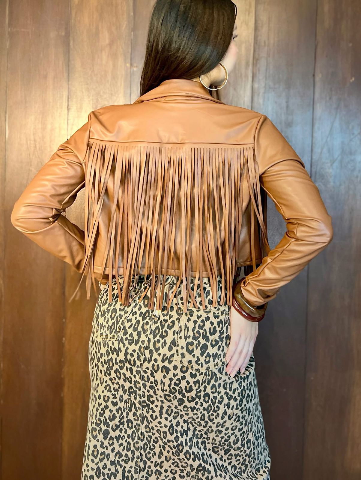 Chamarra flecos efecto piel café