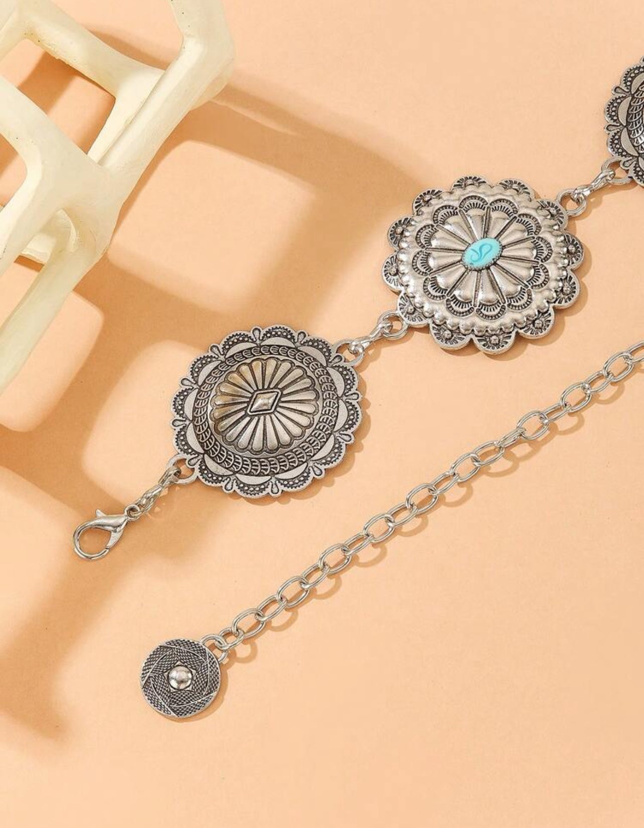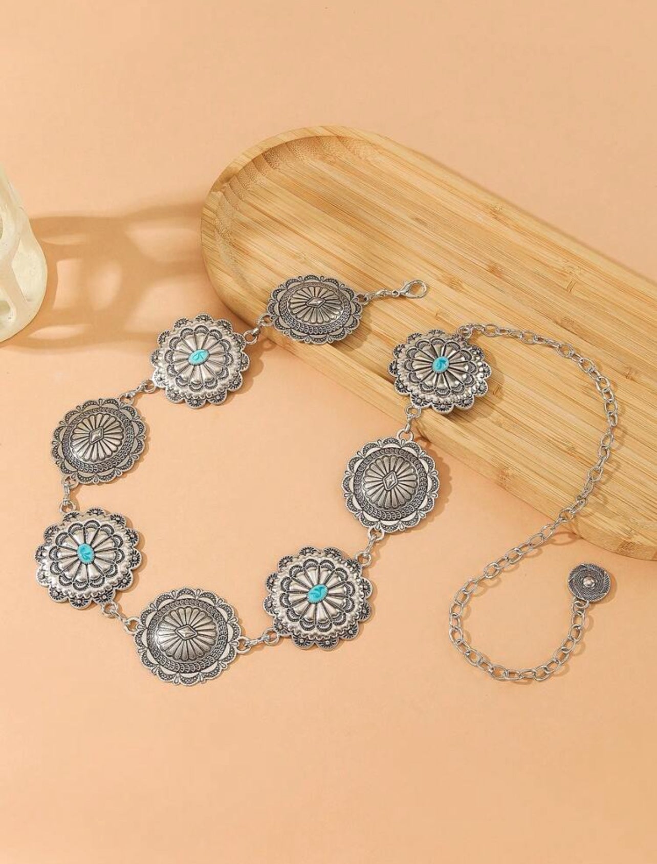 Cinturón eslabones plateado con azul